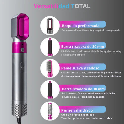 Secador de Cabello Profesional 5 en 1 con Tecnología Iónica – Peinados de Salón en Casa!!